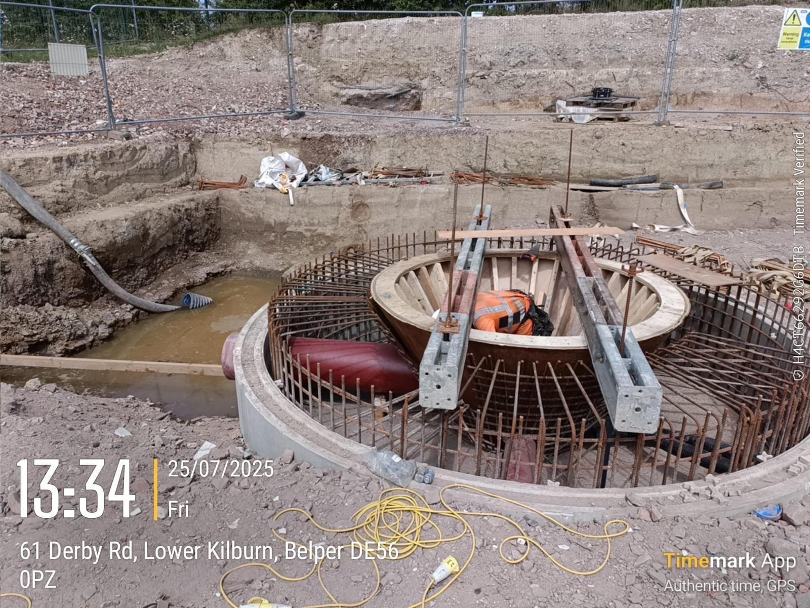 Eric Wright Water Client: Eric Wright Water. Location: Kilburn, Derby. Scope: PST, FST tanks & Launder Walls. Project Summary: J&P Reinforced Concrete Specialist Ltd was appointed to deliver key structural concrete works for new PST, FST tanks and launder wall structures at Kilburn in Derby. Works Delivered: Concrete blinding. Installation of reinforcement. Formwork supply and erection. In-situ concrete placement.
